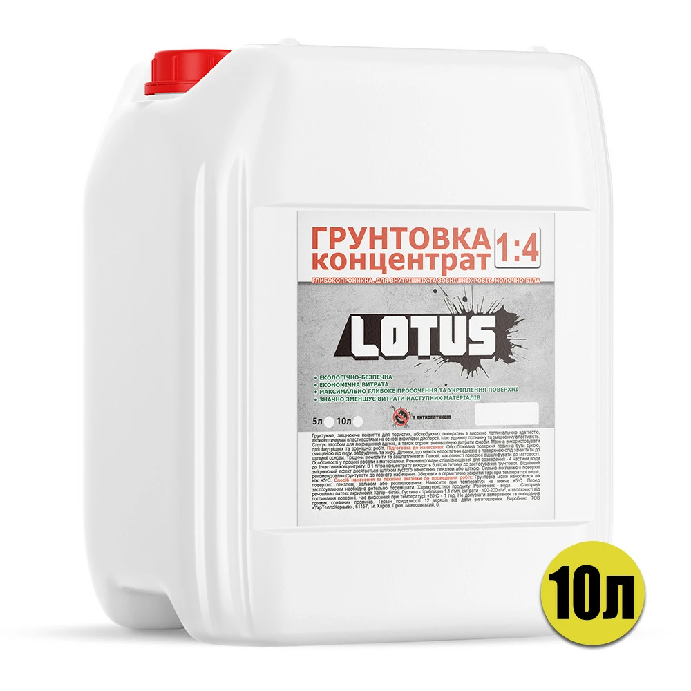 Грунтовка концентрат 1:4 "LOTUS" предназначается для обработки