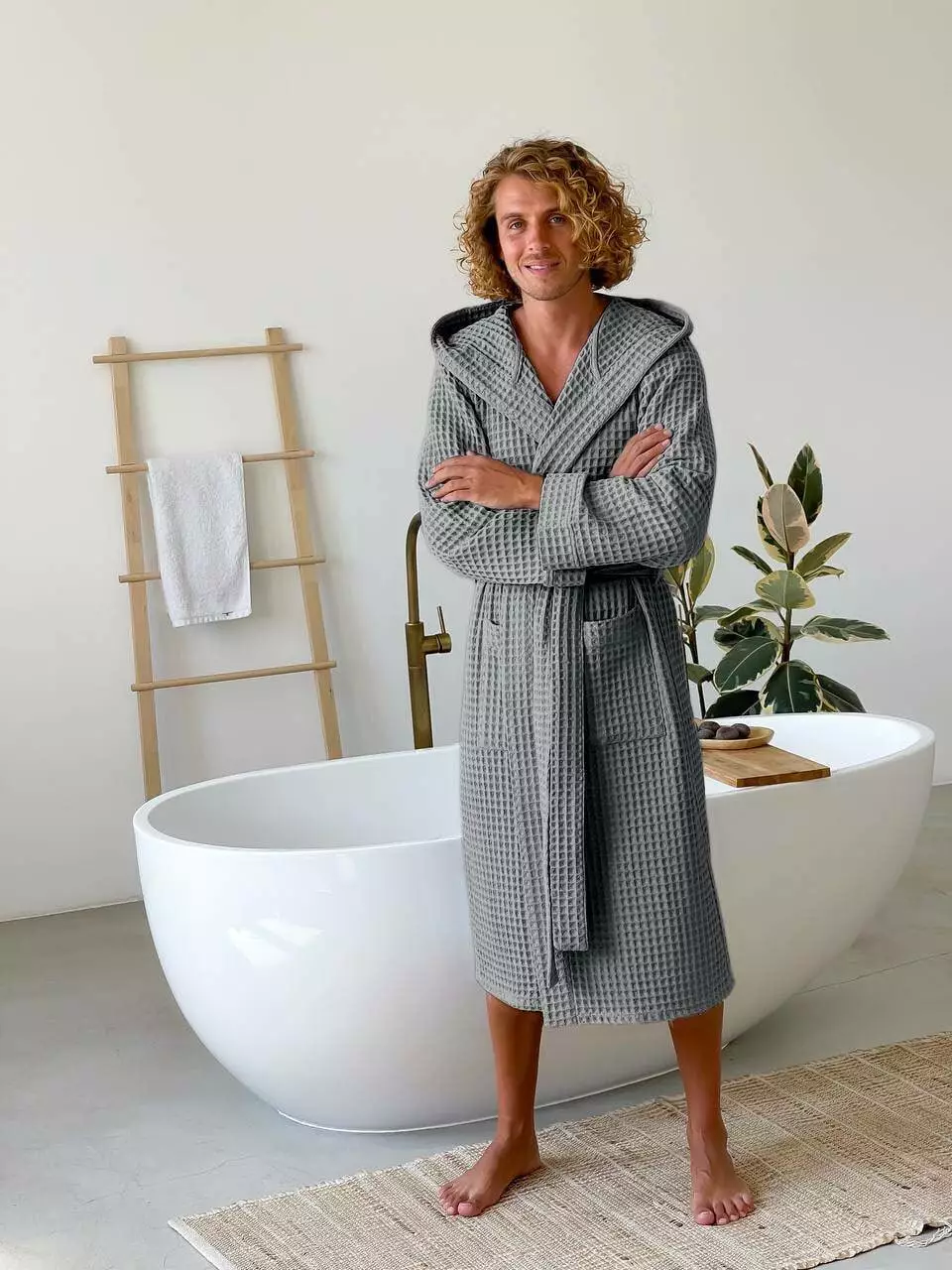 Стильний банний халат з капюшоном приємний до тіла і добре вбирає воду, його дуже приємно вдягнути після лазні або душу. Ідеальний для прохолодної пори року. Щільна та натуральна тканина допоможе швидко зігрітися. Тканина добре "дихає" і не створює парникового ефекту.