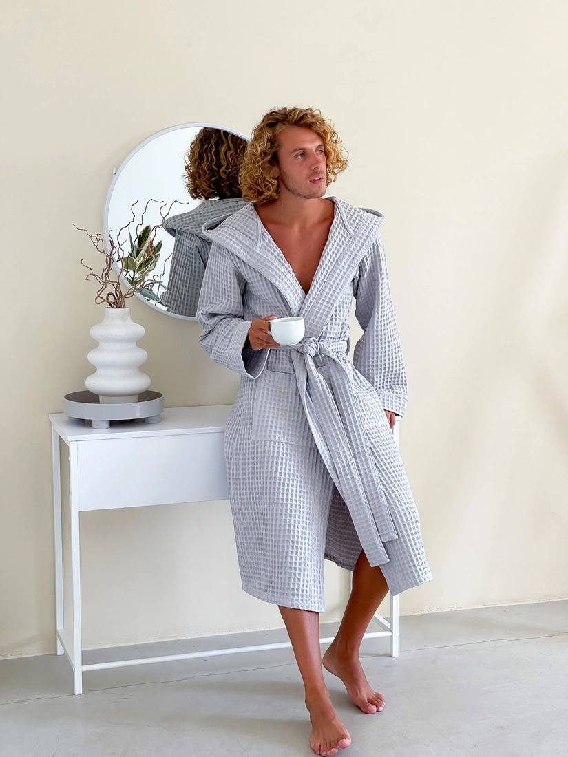 Чоловічий вафельний халат. Тканина велика «грецька вафелька»