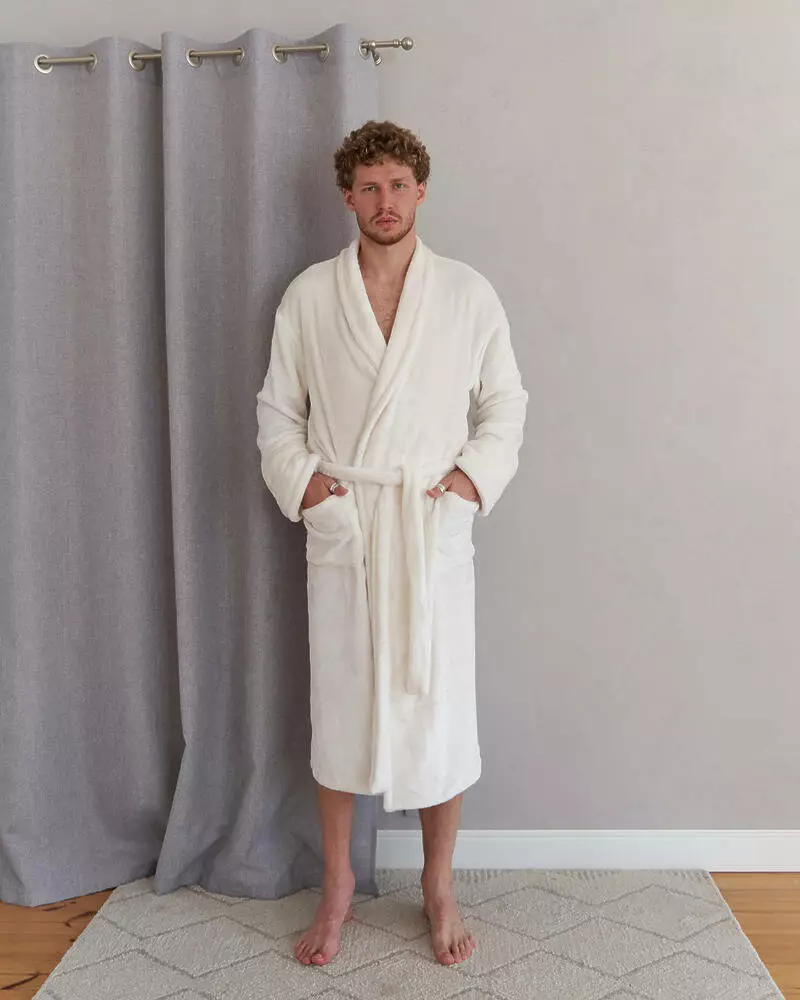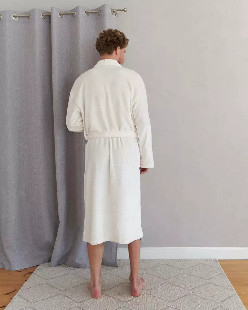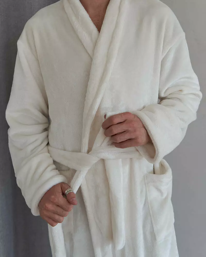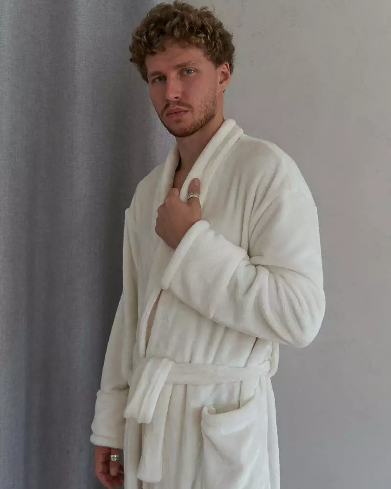 Чоловічий халат із якісної плюшевої махри, дуже приємний та мякий, не викликає подразнень на тілі. Ви зможете загорнутися в нього прохолодним ранком або відразу ж після ванни, адже він добре зберігає тепло. Завдяки класичному фасону, халат дуже комфортний та зручний для відпочинку. -Тканина екологічна, гіпоаллергена, приємна на дотик, придатна для повсякденного носіння; -Халат на запах, з кишенями, є пояс; -Зручний крій, що не сковує рухів; -Не деформується, не линяє, не кашлатиться.