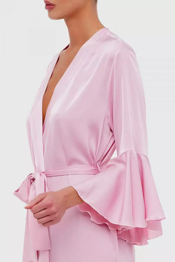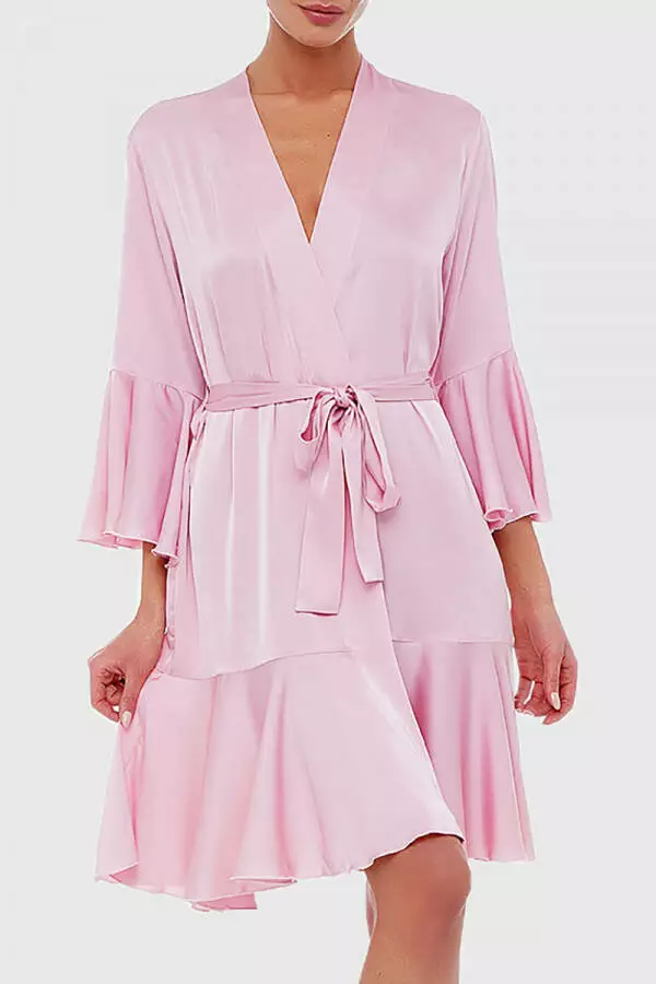 Халат шовковий жіночий з воланами, рожевий підкреслює вашу жіночність.