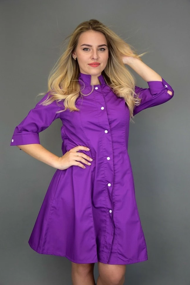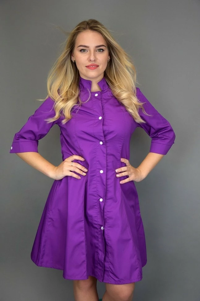 Присутствуют глубокие карманы, воротник халата - стойка.