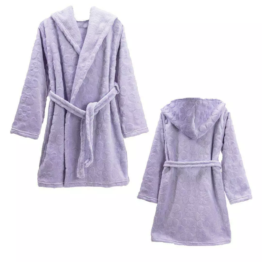 Халат сделан под пояс. Имеет большой капюшон.