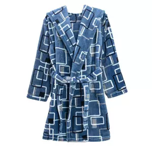 Халат сделан под пояс. Имеет большой капюшон.
