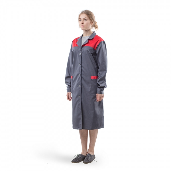 Халат женский рабочий для защиты от общепроизводственных загрязнений и механических воздействий.