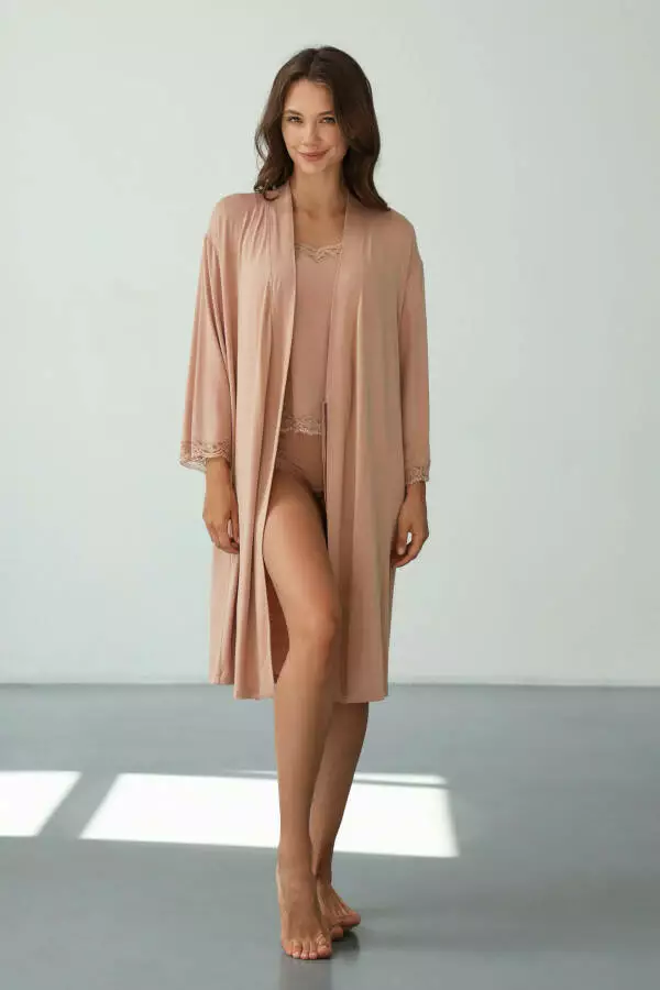 • Тип модели: Халат жіночій модал з мереживом