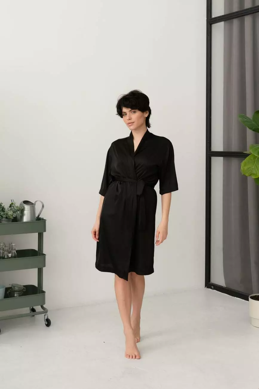 Вишуканий чорний жіночий халат Tango із тканини шовк Армані, з колекції Tango Volcano.