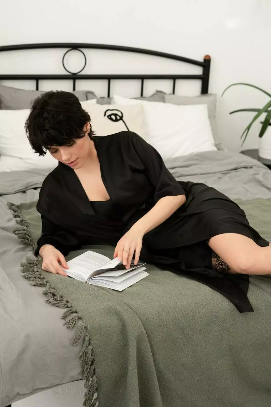 Кожен дотик цієї тканини - справжня насолода для вашого тіла, вона ласкаво обгортає вас, надаючи відчуття найвищого комфорту. У цьому халаті ви будете виглядати вишукано та звабливо.