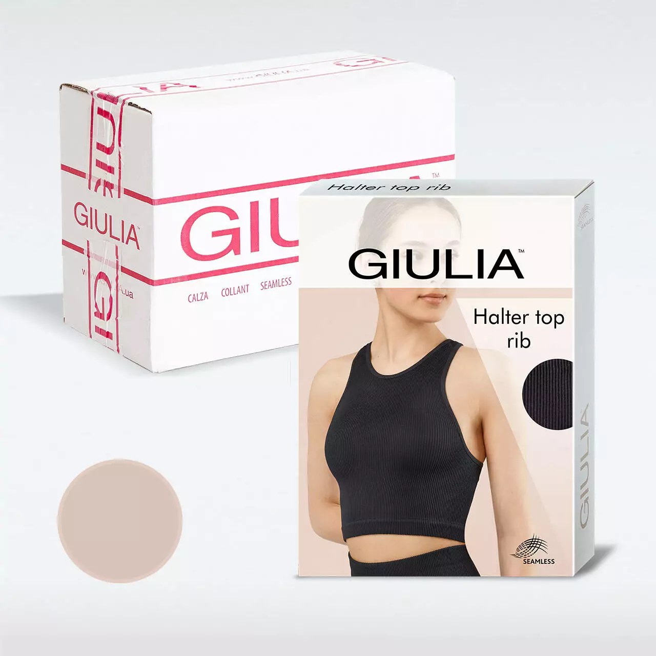 Безшовний топ в рубчик з широкими бретелями Giulia HALTER TOP RIB naturale, S/M