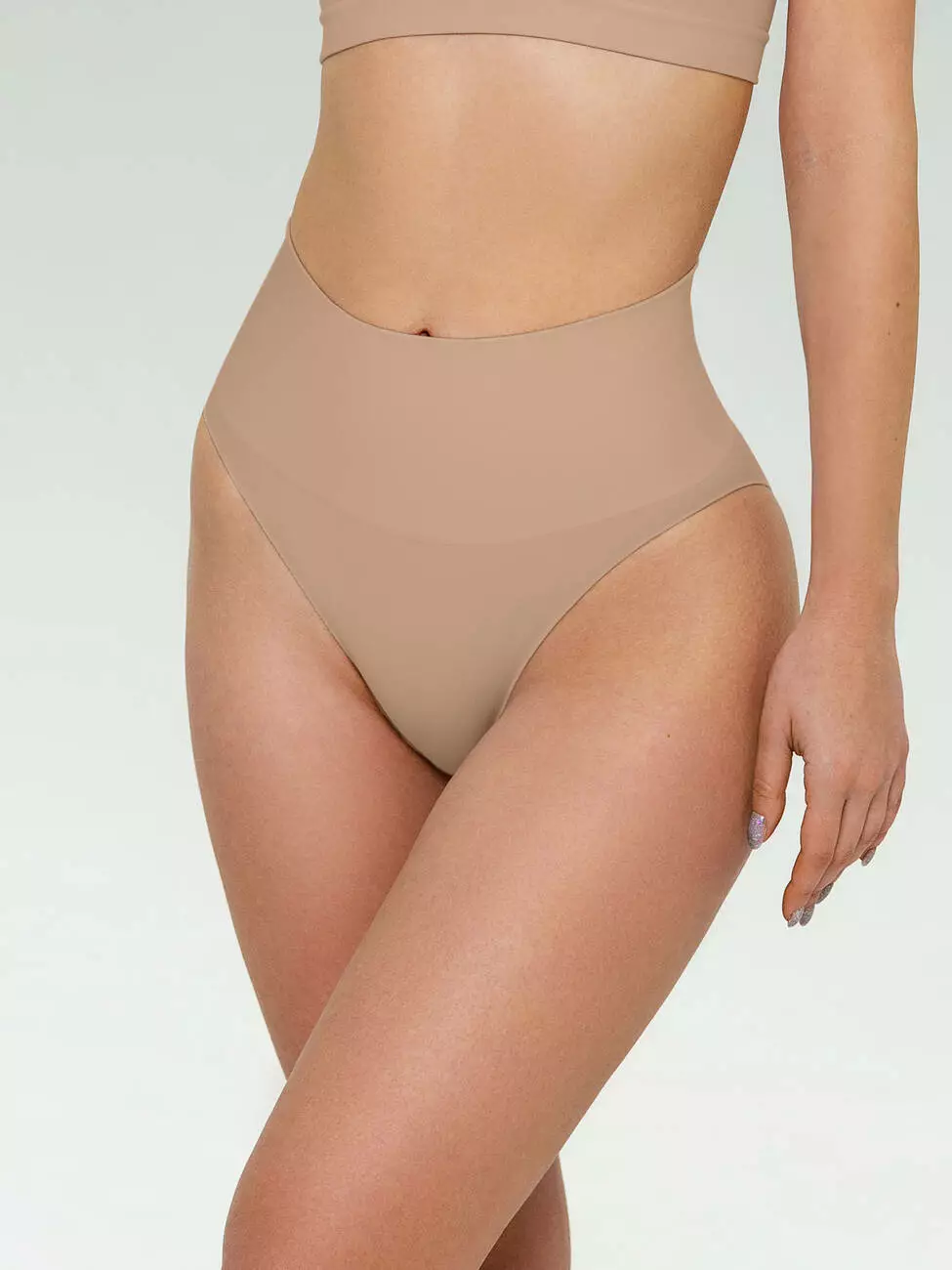 Жіночі трусики-сліпи з широким моделюючим поясом забезпечують підтримку живота та талії, формуючи гладкий силует. Спеціальні зони в області сідниць підкреслюють природні вигини та створюють ефект підтягнутості. Класичний крій hi-leg ідеально підходить для щоденного носіння та залишається непомітним під одягом.