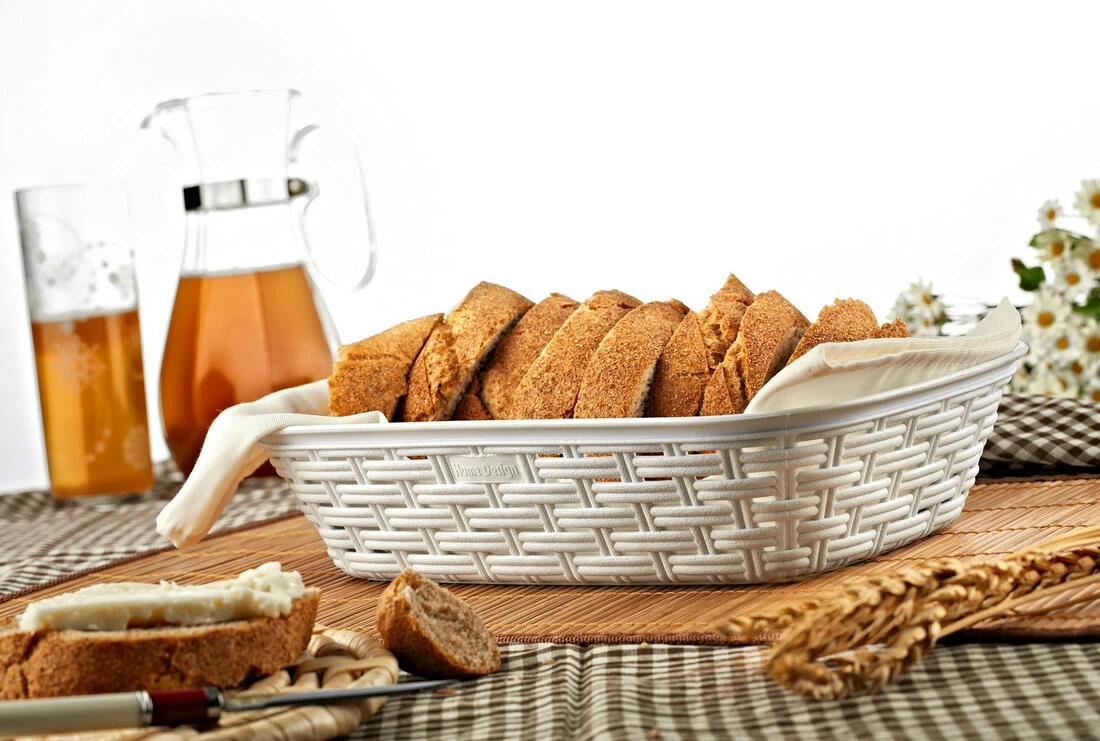 Хлібний кошик під ротанг чудово підійде для зберігання хліба і хлібобулочних виробів, а також послужить відмінним аксесуаром для оформлення інтер'єру. Матеріал виробу - поліпропілен, безпечний при контакті з харчовими продуктами. Допускається використовувати в діапазоні температур від -10 до + 95 ° C. Можна мити в посудомійній машині.