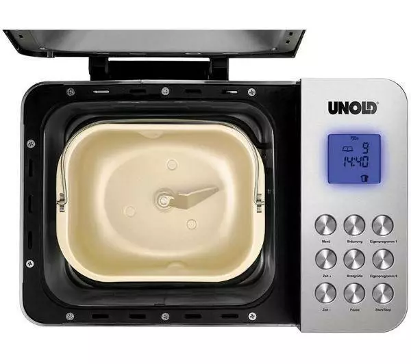 З домашньою хлібопічкою UNOLD 68456 ви зможете самостійно готувати смачний хліб зі скоринкою. Серед 16 збережених програм ви обов'язково виберете ту, яка дасть змогу приготувати смачний хліб. Ви можете приготувати цільнозерновий хліб або тісто. Під час випічки ви можете додатково додати інші сировинні матеріали, наприклад, насіння або сухофрукти.