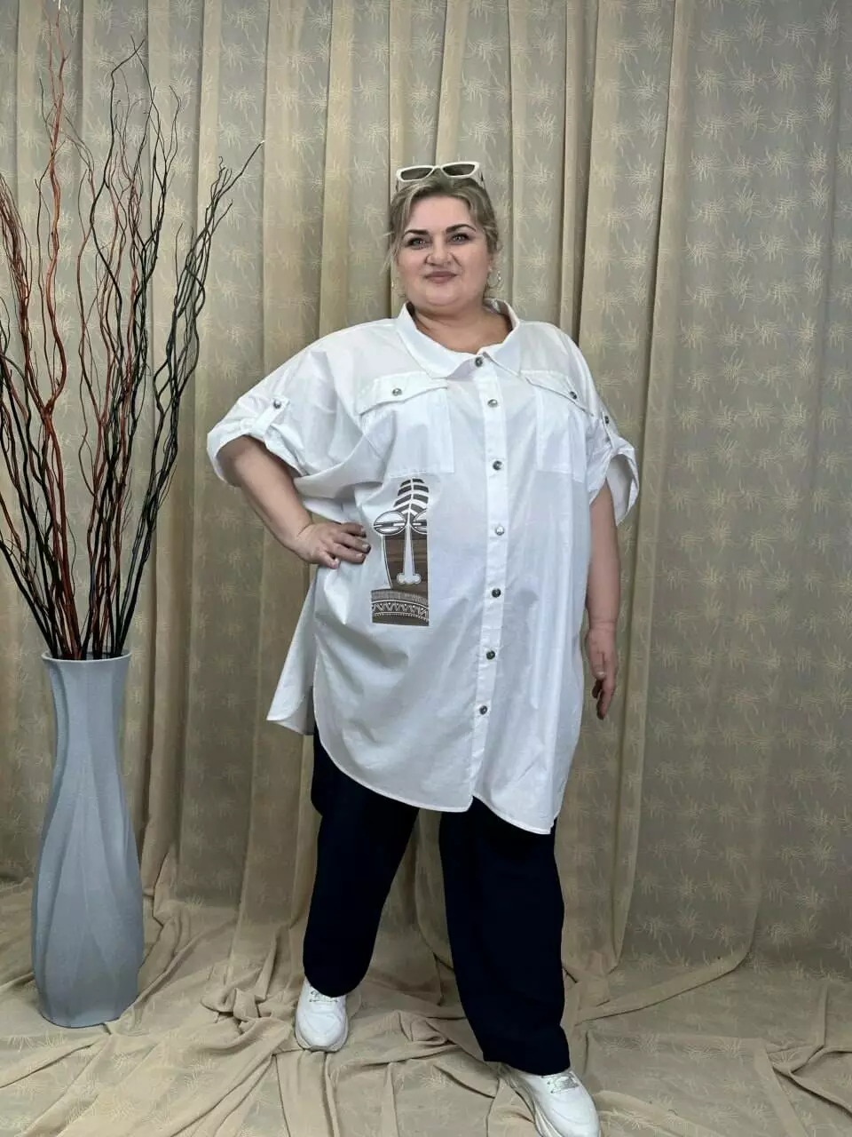 Хлопковая рубашка-туника оверсайз розмір 60-80 "Мадагаскар"
