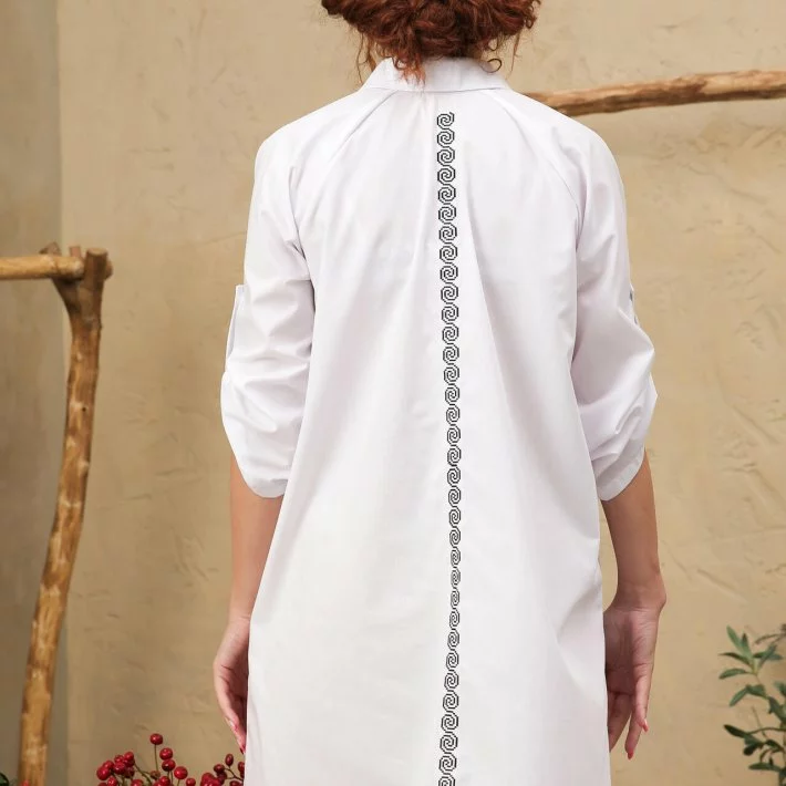 Спина трохи подовжена. Сорочка оздоблена декоративною вишивкою