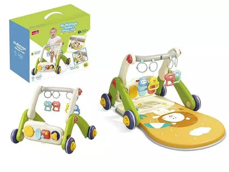 Ходунки 6666 (12/2) 3в1, килимок, бізіборд, 4 брязкальця-підвіски, піаніно, мелодії, підсвічування, в коробці