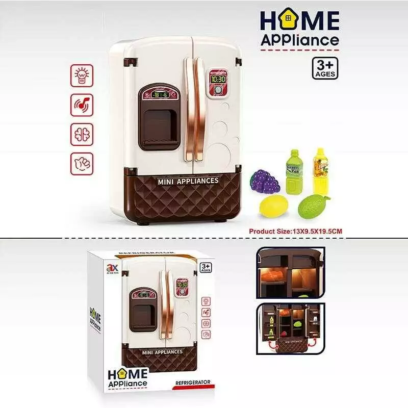 Холодильник 6906 A (80/2) розмір - 13х9.5х19 см, підсвічування, мелодія, рухомі елементи, муляжі продуктів, полички, на батарейках, в коробці