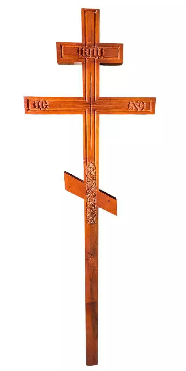 Хрест дерево лак різьблений 190*58*4 см. Ширина основи 7,5 см.