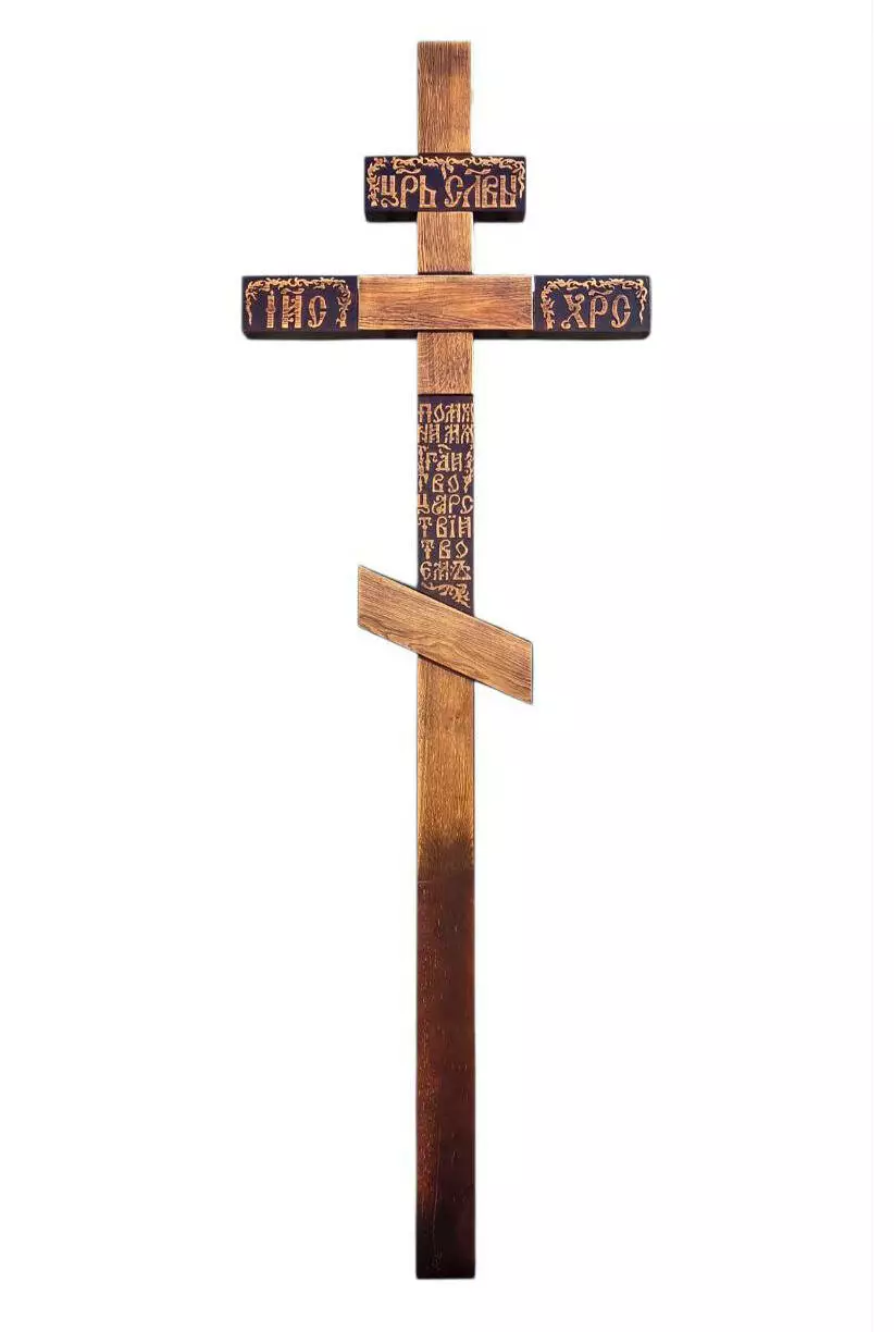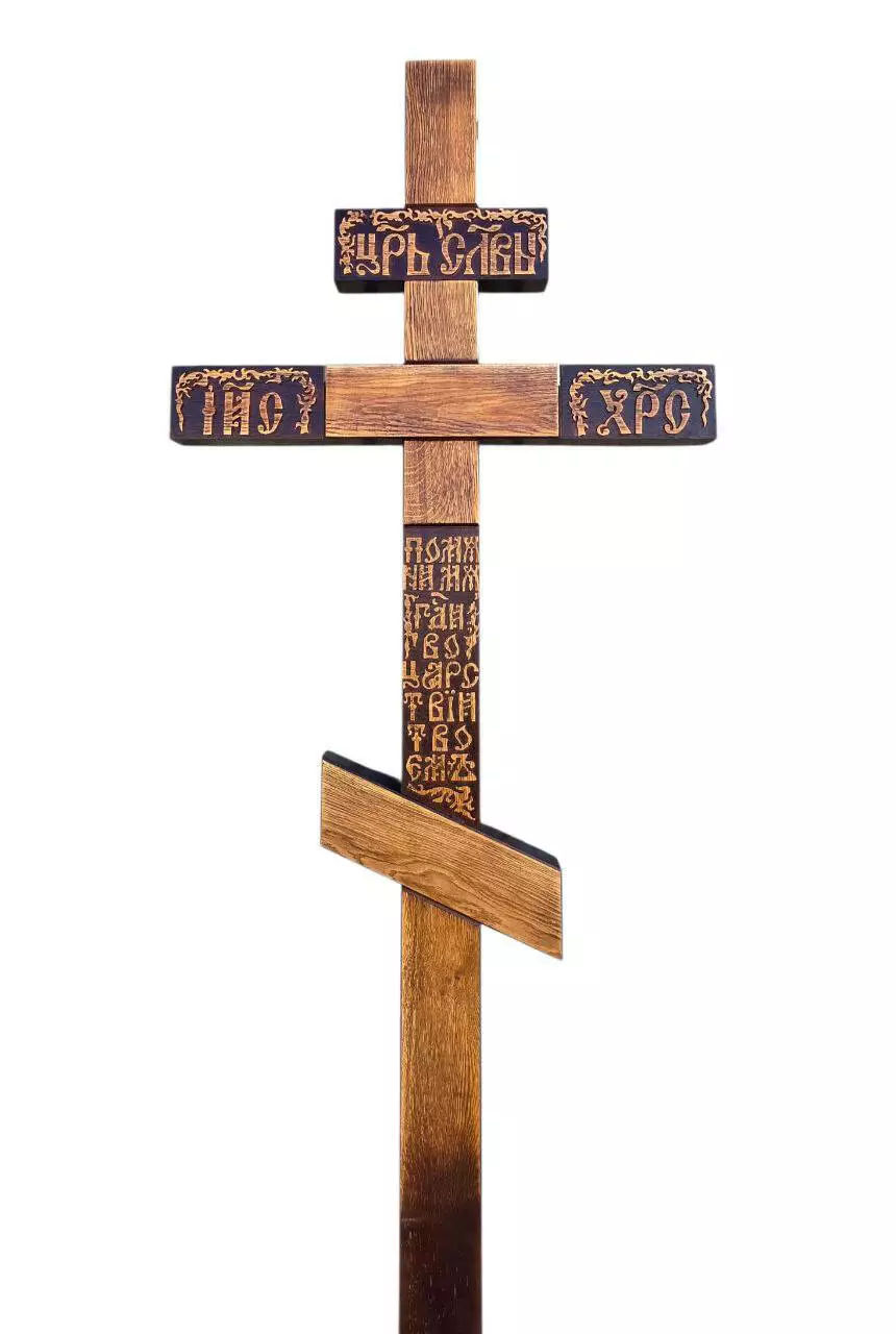 Хрест лаковий різний дуб, розмір 230*78*4,5 см, ширина основи 11 см.