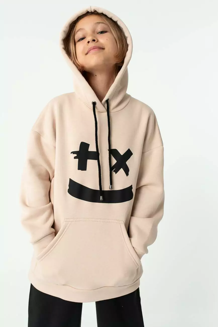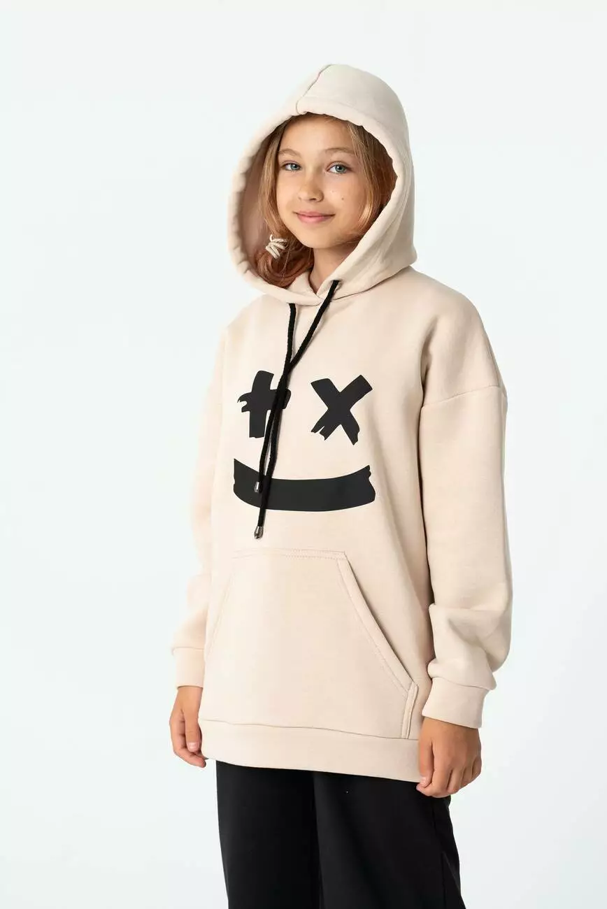 Трендовий теплий худі від Yumster. Модель - унісекс. Деталі виробу: Колір худі - бежевий. Знижена лінія плеча. Глибокий капюшон зі шнурками. На грудях принт Marshmello. По низу виробу і на рукавах манжети. Спереду кишеня-кенгуру. Крій - оверсайз. Тканина - трьохнитка на флісі.