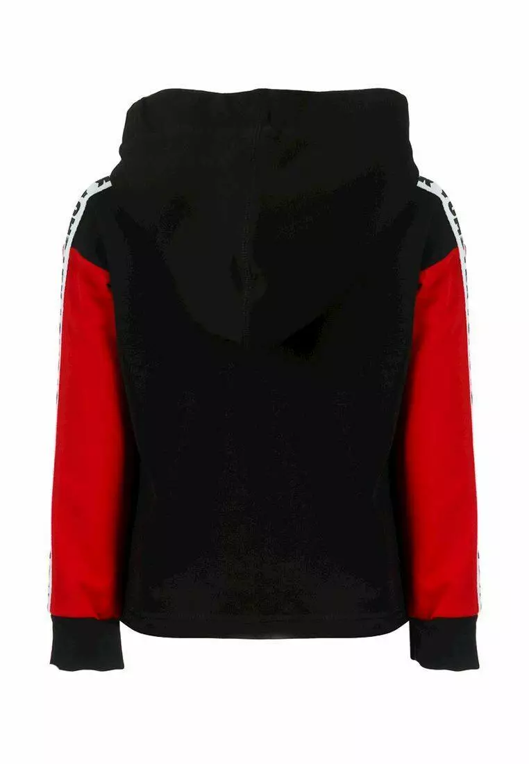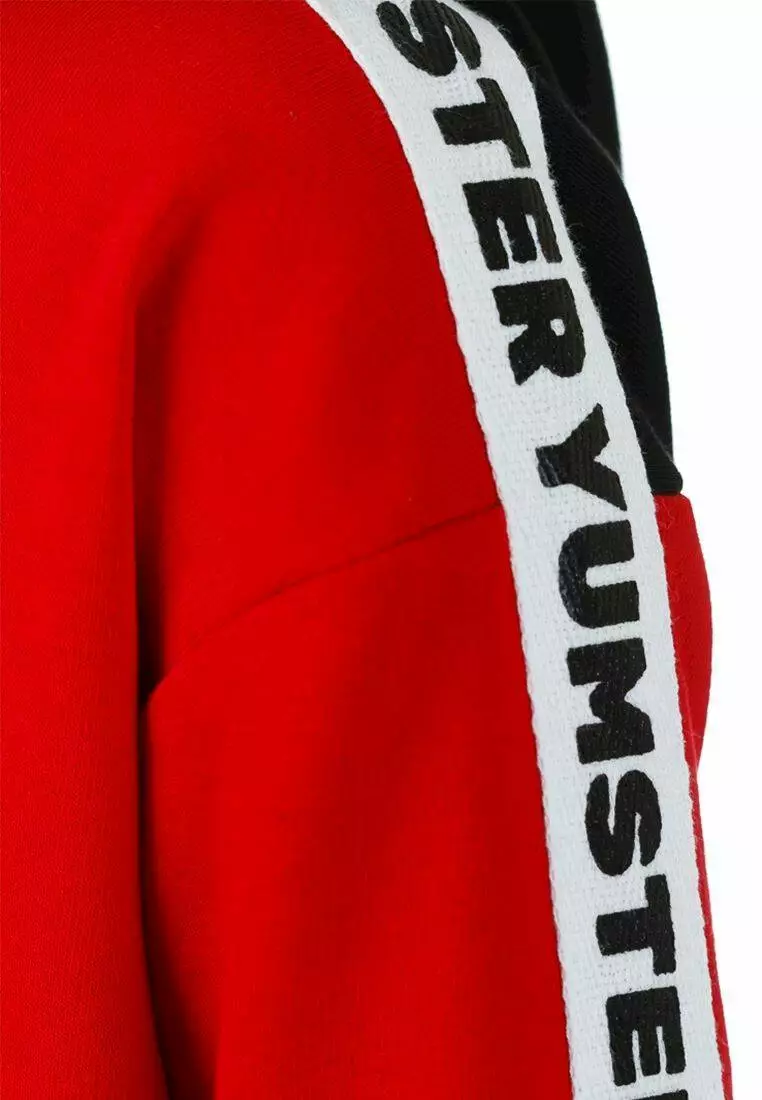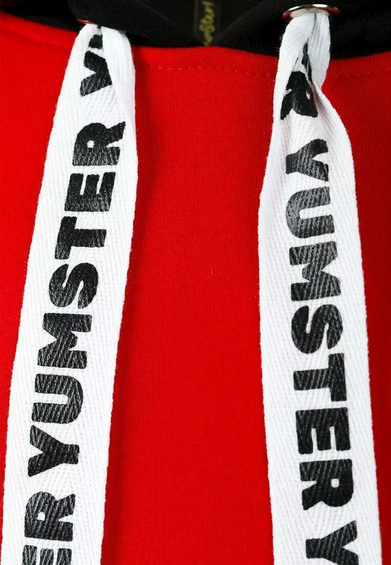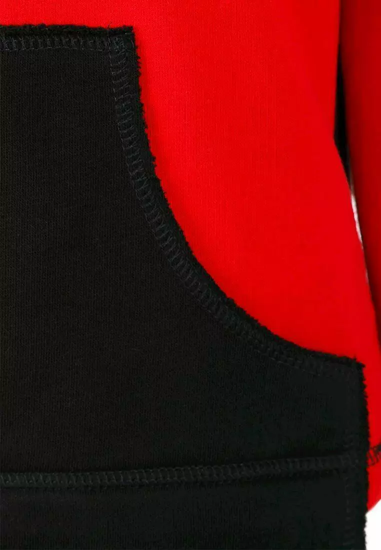 Червоно-чорна трикотажна толстовка з капюшоном і тасьмою.