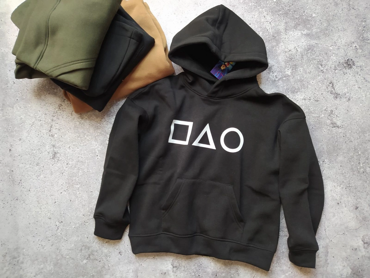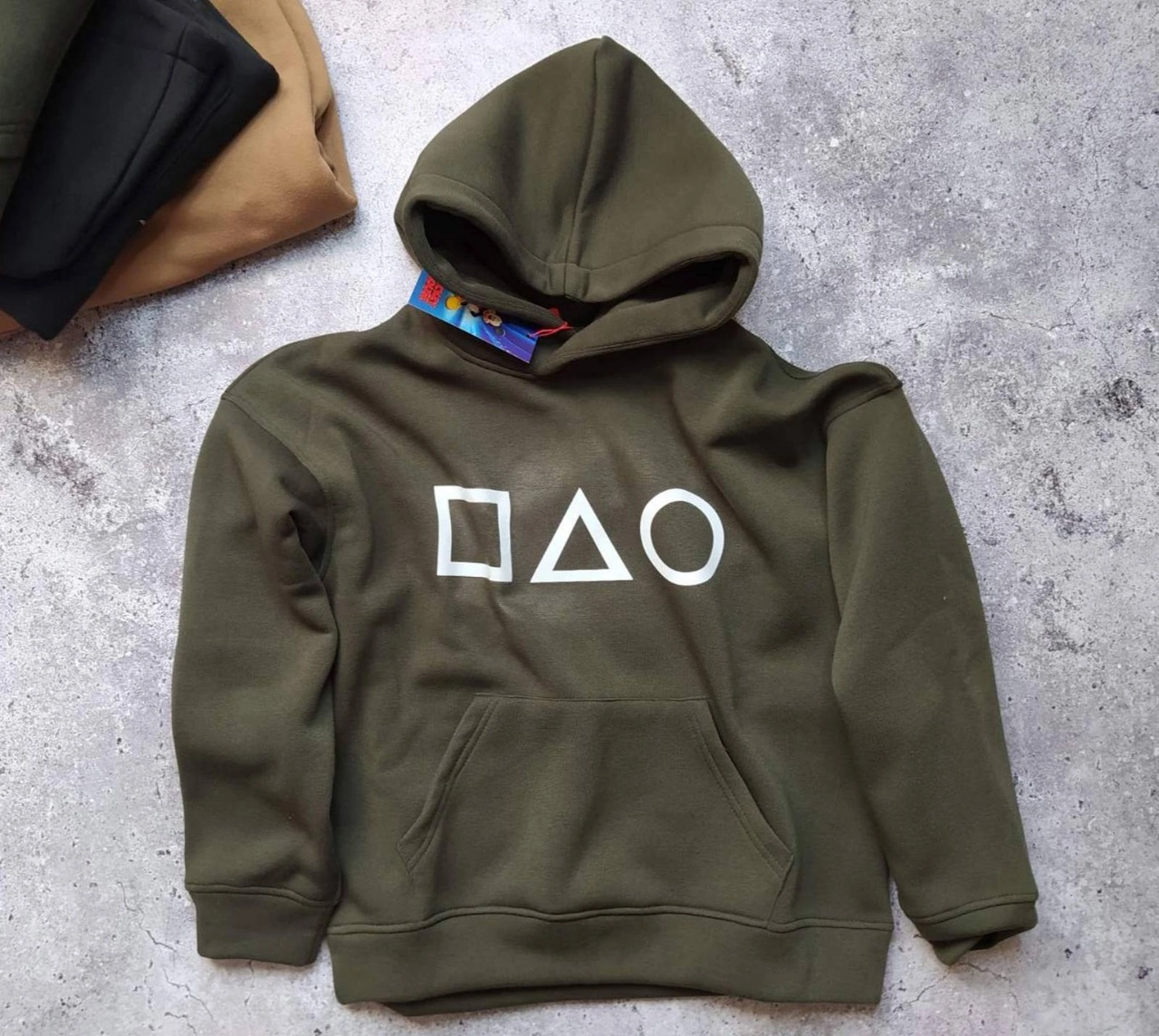 Худи "Игра в Кальмара" 240 грн размеры: 134,140,146,152 Трехнить Цвета: оливковый. хакки. черный и коричневый
