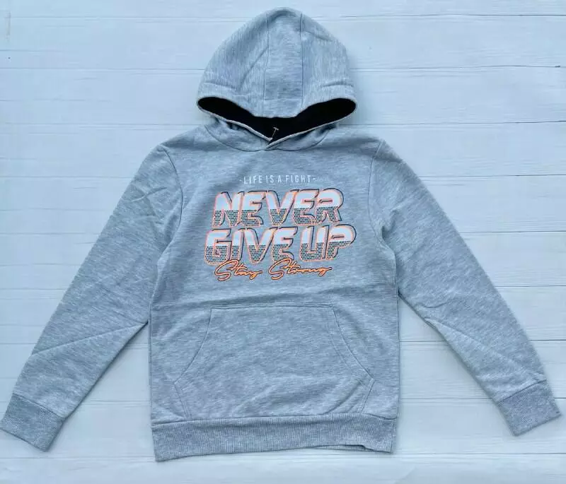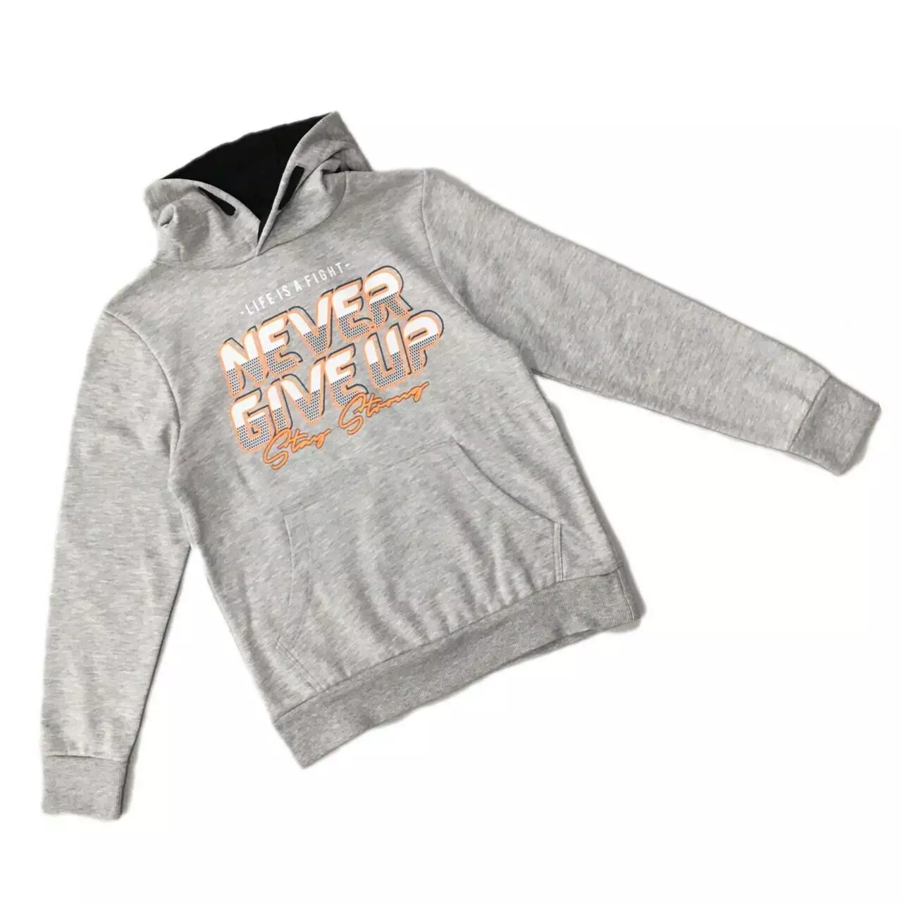 Худі утеплене Напис - Never give up мал. Сірий 95% котон/5%еластан 15924 BREEZE