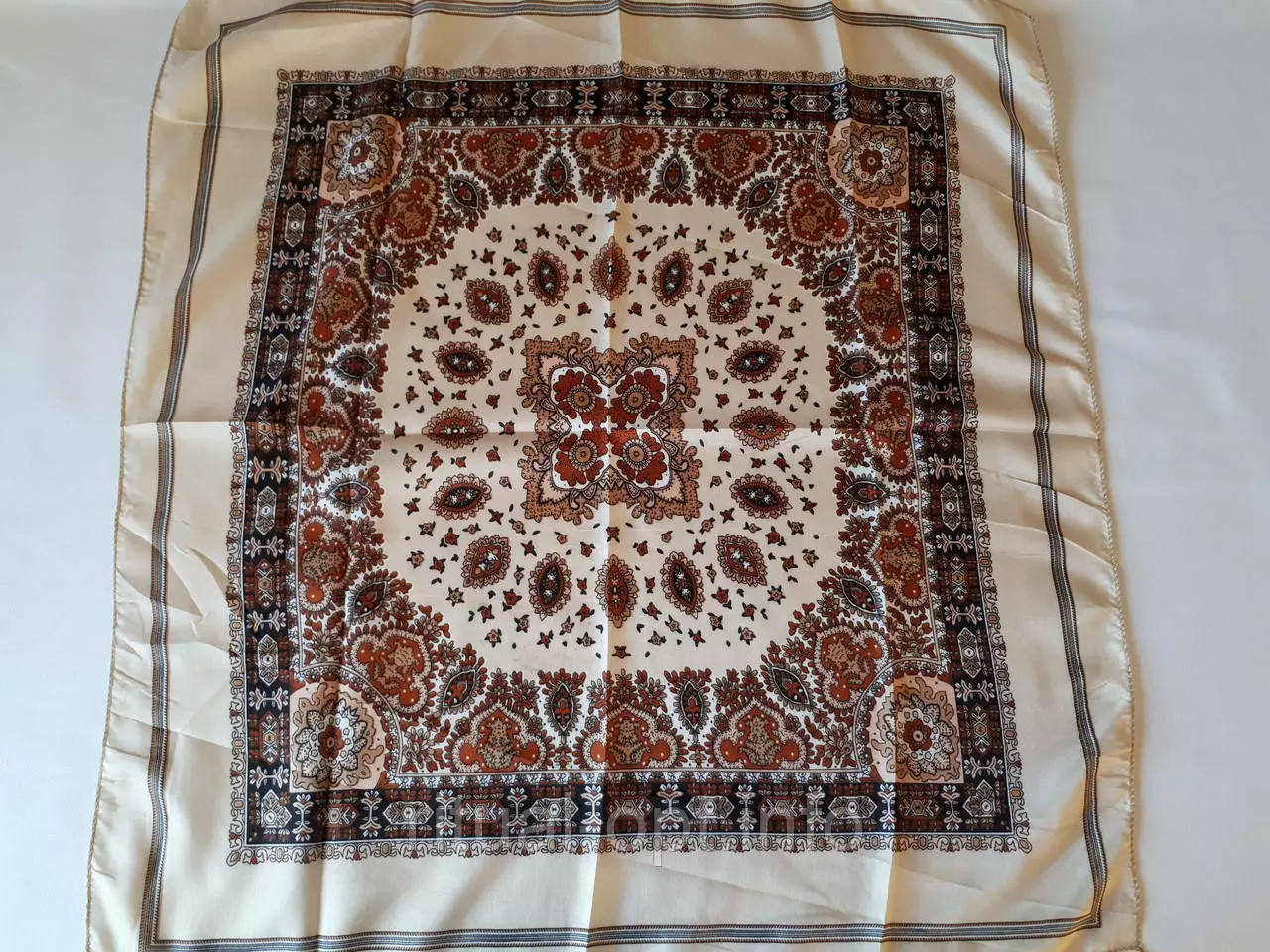 Матеріал штучний шовк.Розмір 70 на 70 сантиметрів.Продаємо за бажанням клієнта - будь-яка кількість будь-якого розміру.