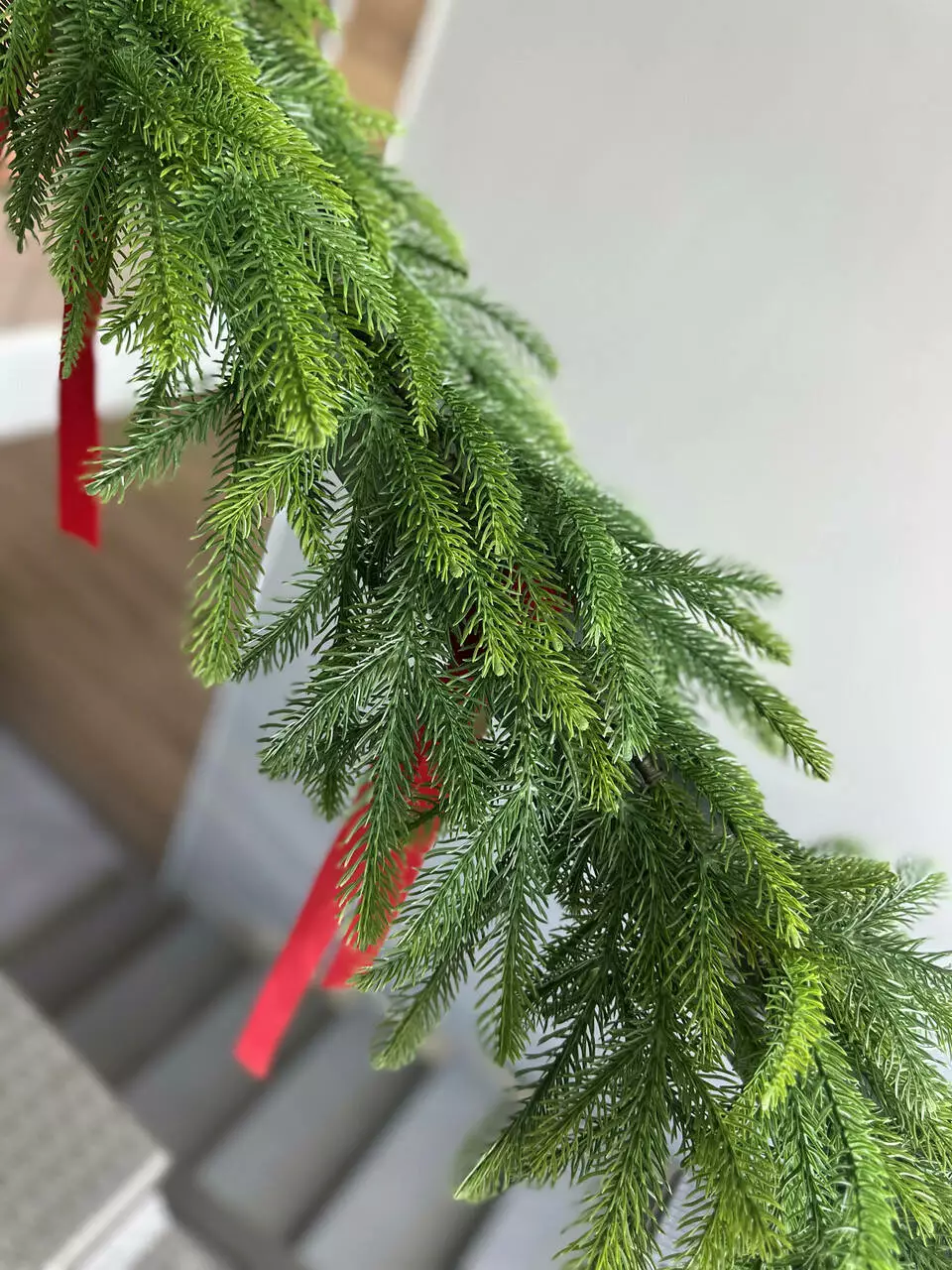Хвойная гирлянда HVOYA Forest длиной 200 см выполнена из литых веточек с природным градиентом цвета — от насыщенного зелёного до мягкого салатового оттенка. Такой переход создаёт эффект молодой хвои и делает гирлянду живой и объёмной.