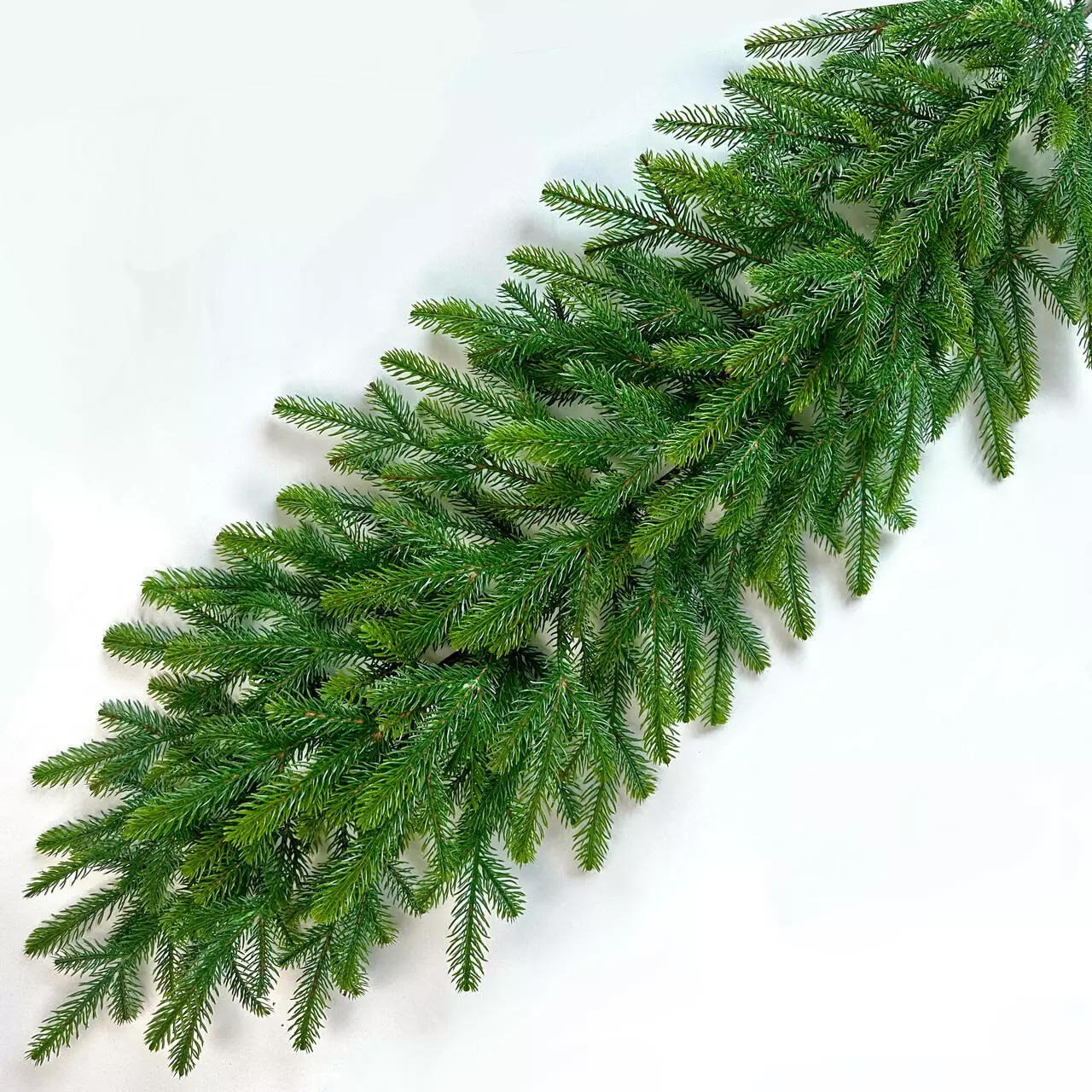 Хвойная гирлянда HVOYA Forest длиной 200 см выполнена из литых веточек с естественным градиентом цвета — от насыщенного зелёного до мягкого салатового оттенка. Такой переход создаёт эффект молодой хвои и делает гирлянду живой и объёмной.
