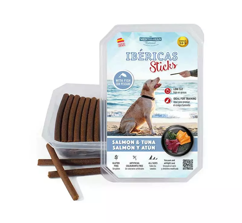 Ibericas Sticks м’ясні палички ЛОСОСЬ & ТУНЕЦЬ 800g Ibericas Sticks від MEDITERRANEAN NATURAL - це 100% натуральні ласощі для собак, що виготовлені з м’яса та риби найвищої якості. Містять олію орегано та розмарин, природні антиоксиданти, які покращують травлення. Гіпоалергенні, не містять глютену, штучних барвників, ГМО, трансжирних кислот. Склад: М'ясо, 10% лосося, 10% тунця, рис хв. 7%, рослинний гліцерин. Добавки: Консерванти: пропіонова кислота, формут кальцію, лимонна кислота. Харчові добавки: олія орегано. Аналітичні складові: Білок: 27,6%, жир: 6,5%, сира зола: 11,5%, клітковина: 1%, волога: 14,5%, 325 Ккал / 100г. омега 3: 0,23 г / 100 г, омега 6: 0,6 г / 100 г. омега 9: 1,3 г / 100 г