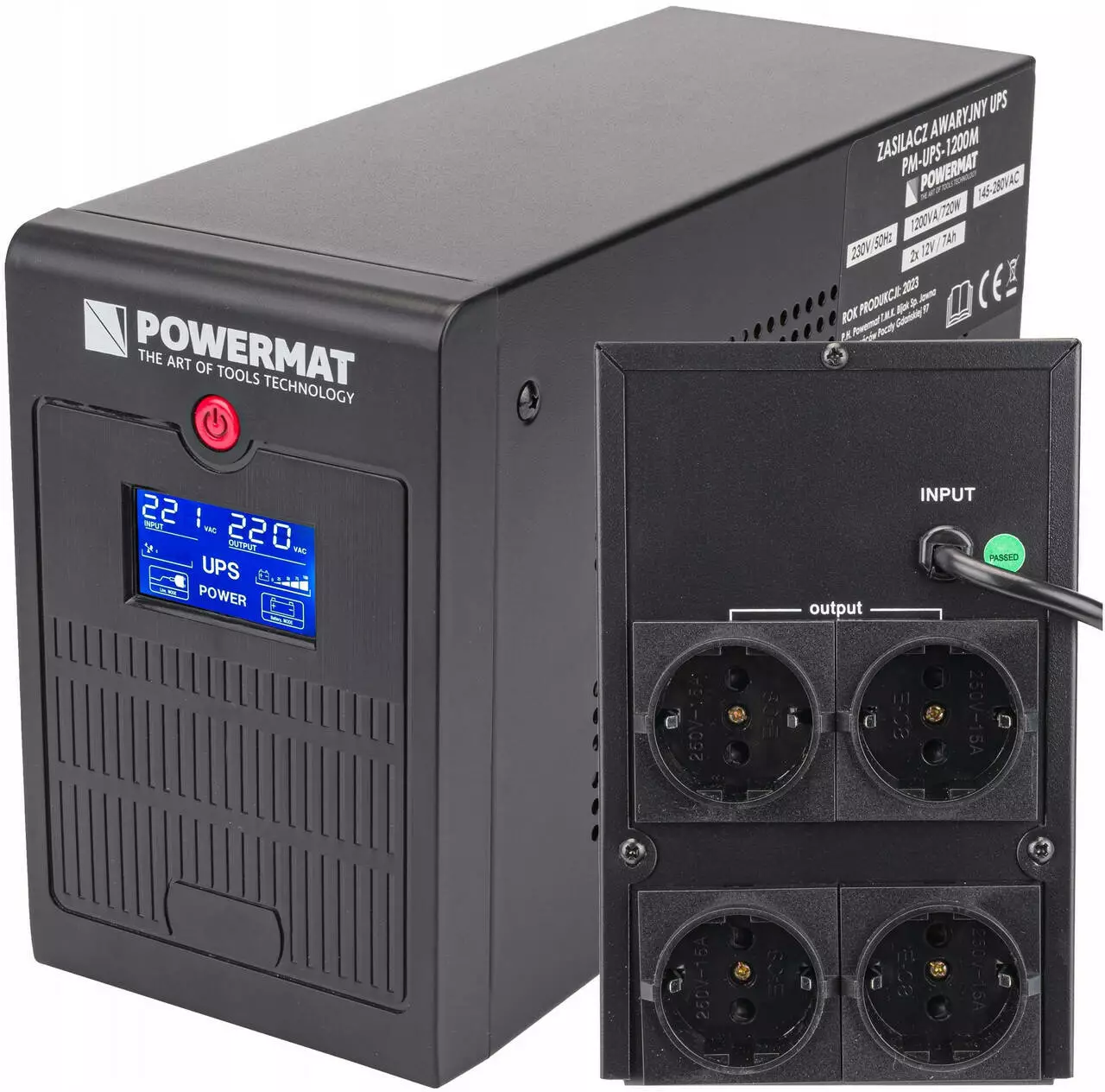 Источник бесперебойного питания PM-UPS-1200M компании POWERMAT представляет собой автономный источник питания эффективной мощностью 720 Вт и полной мощностью 1200 ВА.
