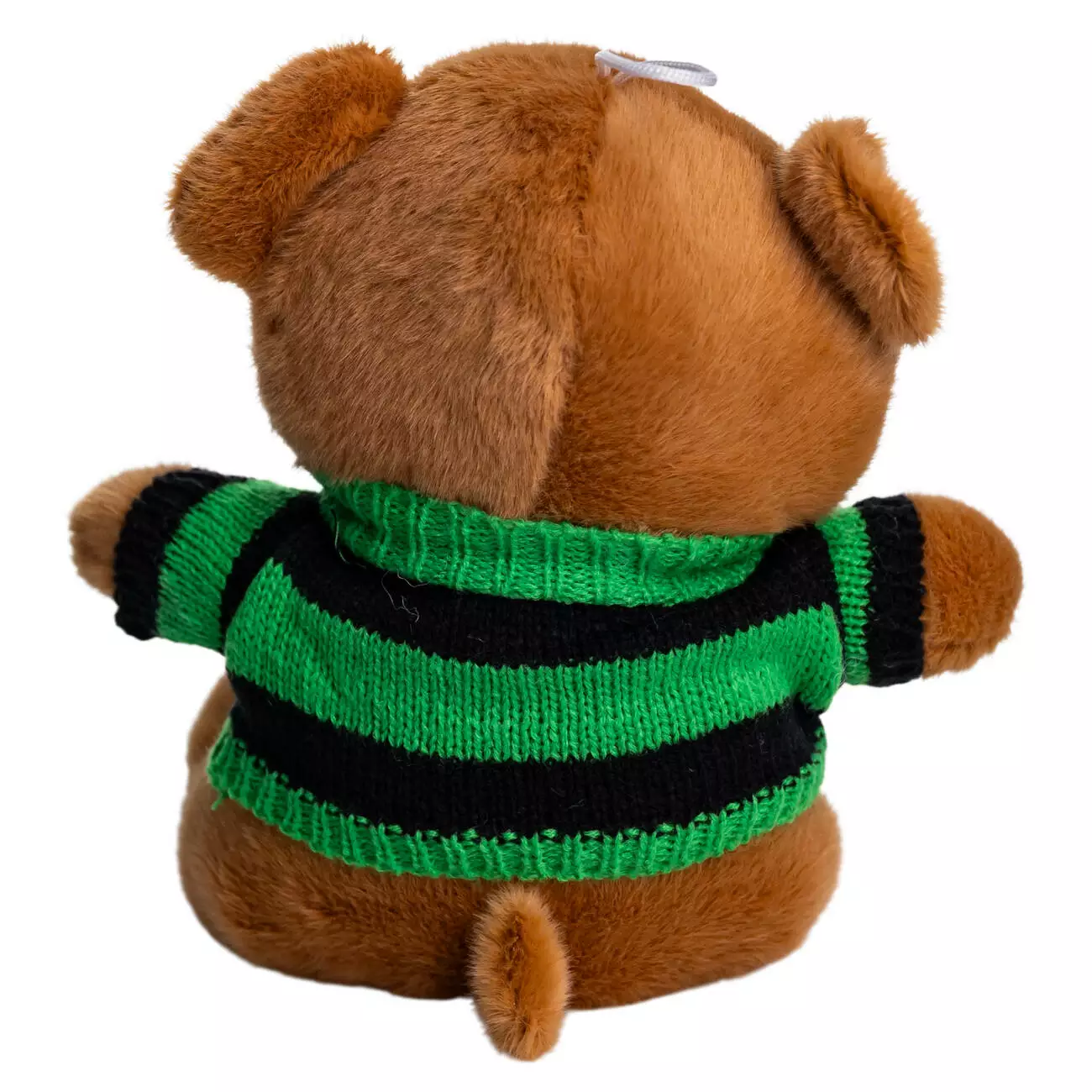 Класична м'яка іграшка в сучасному стилі. Ведмідь одягнений у в'язаний джемпер, який надає образу індивідуальності та виділяє його серед звичайних плюшевих аксесуарів. Іграшка виготовлена з приємного на дотик плюшу з коротким ворсом, деталі ретельно пропрацьовані, що робить ведмедя безпечним для дітей будь-якого віку.