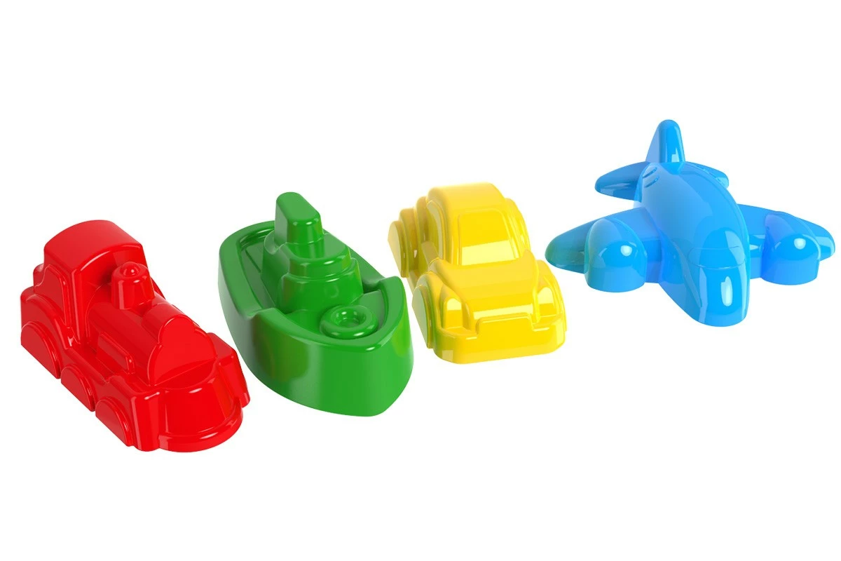 Набір формочок для піску «транспорт» для захоплюючих ігор в пісочниці і у моря. З формах з набору дитина зможе зробити різні пасочки: кораблик, літачок, машинка і паровоз. З такими іграшками малюкам цікаво грати як вдома, так і на вулиці. Можна формувати пасочки в різній послідовності, розмістити транспорт в «автопарку», або разом з друзями, придумати власну захоплюючу історію. Такі ігри не тільки добре розвивають моторику рук, а й допомагають вивчати різні види транспорту, кольору і форми. Виготовлені іграшки з міцного пластику, без запаху. У наборах 4 різні формочки, упаковані в сітку з яскравою кольоровою етикеткою.