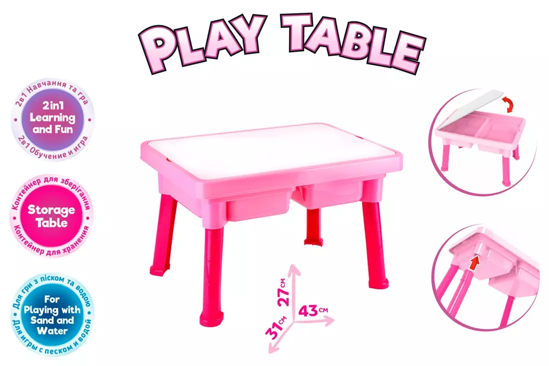 Для кожного малюка важливо правильно облаштувати його ігровий простір. Необхідно підібрати зручне місце для малювання , ігор з конструктором, посудом та машинками, а також функціональні місця для зберігання іграшок. Тут стане в нагоді "Ігровий столик" від ТехноК. Це іграшка 2 в 1 – місце для гри, творчості та одночасно місткий контейнер для зберігання олівців, фломастерів, гумок та іншої дрібниці. Столик займе почесне місце у кожній дитячій кімнаті. Столик складається з корпусу з двома нішами, кришки та ніжок . Його висота у зібраному вигляді з ніжками – 27 см, і діткам зручно грати на підлозі чи килимі. При необхідності ніжки можна зняти та використовувати корпус із кришкою на столі. Звертаємо увагу, що в такому разі ніжки зручно розмістити всередині, в одній із ніш. Кришка столика абсолютно гладка , виготовлена із спеціального міцного матеріалу. Нею можна малювати фломастерами на водній основі. Варіанти гри зі столиком безліч: - використовувати як столик для малювання олівцями, фломастерами, фарбами; - місце для творчості, ігор з пластилінами, кінетичним піском, різними сипучими матеріалами та водою; - для зберігання олівців, фломастерів та іншого канцелярського приладдя; - навіть як гараж для маленьких машинок чи будиночок для лялечок. А щоб одразу пограти, рекомендуємо завантажити та роздрукувати наші авторські розмальовки з милими звірятками. Іграшка виготовлена із якісного матеріалу, без запаху. Виріб зафіксований кольоровим клапаном. Для дітей віком від 2 років. Вага 915 г габаритні розміри 43 х 31 х 27 см Розміри упаковки 44 х 39 х 31.5 см