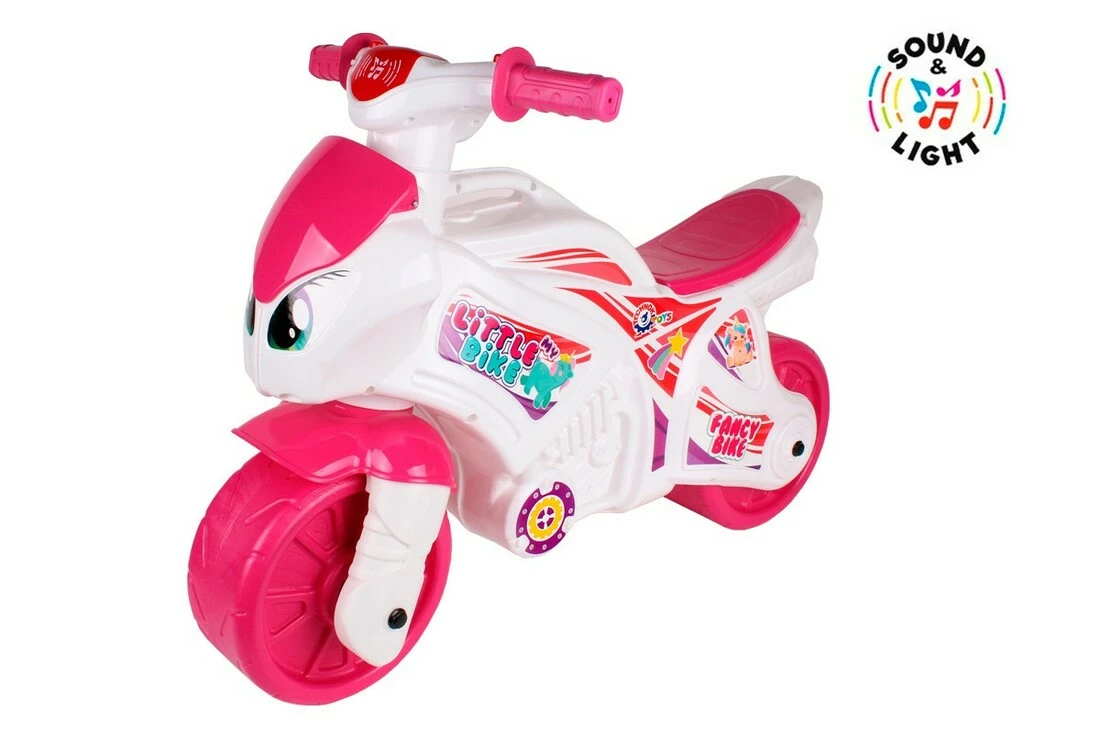 Поповнення у серії іграшкового автомототранспорту - "Мотоцикл ТехноК" у рожевих кольорах з електронікою. Цікавий сучасний дизайн, світлові та музичні ефекти - це байк для сучасних принцес. Оригінальною родзинкою мотоциклів є великі стійкі колеса, виготовлені методом видуву. Завдяки цьому вони є «тихішим» під час їзди. І тепер можна їздити на улюбленому мотоциклі навіть вдома, не заважаючи сусідам:) Оптимально підібрана ширина керма, з м’якими еластичними ручками, робить байк зручним під час керування. На корпусі мотоцикла передбачена спеціальна ручка, за яку зручно його переносити. Особливістю цієї іграшки є вбудовані музичні та світлові ефекти. Мотоцикл має дві кнопки, при натисканні на кожну з яких можна отримати різні варіанти звуку: від сигнального звуку типу «фа-фа» до потужного «ричання», як у реальних крутих байках. З таким мотоциклом ігри стануть ще яскравішими та різноманітнішими. Іграшка "Мотоцикл ТехноК" стане справжнім двоколісним другом для Ваших дівчаток! Виготовлений мотоцикл з міцного якісного пластику без запаху.