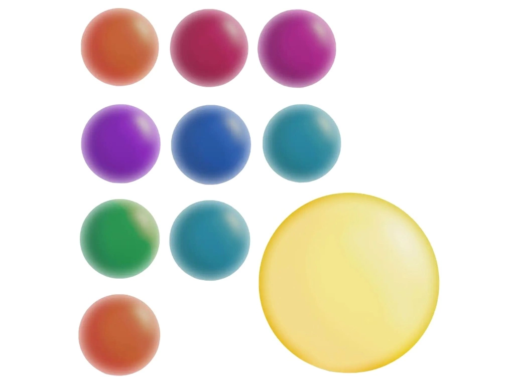 Ігри з м'ячем розвивають координацію рухів, зміцнюють м'язи плечового пояса, розвивають та зміцнюють дрібні м'язи рук, сприяють розвитку окоміру, влучності. В іграх з м'ячем розвиваються фізичні якості: швидкість, стрибучість, сила, спритність. Матеріал: Гума Вік: 3+ В асортименті: 8 видів.