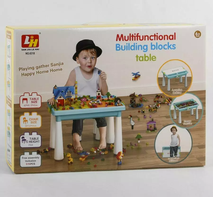 <p>Ігровий столик 6318 (6) стільчик, конструктор, 515 деталей, в коробці</p>