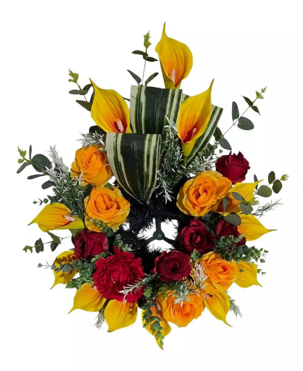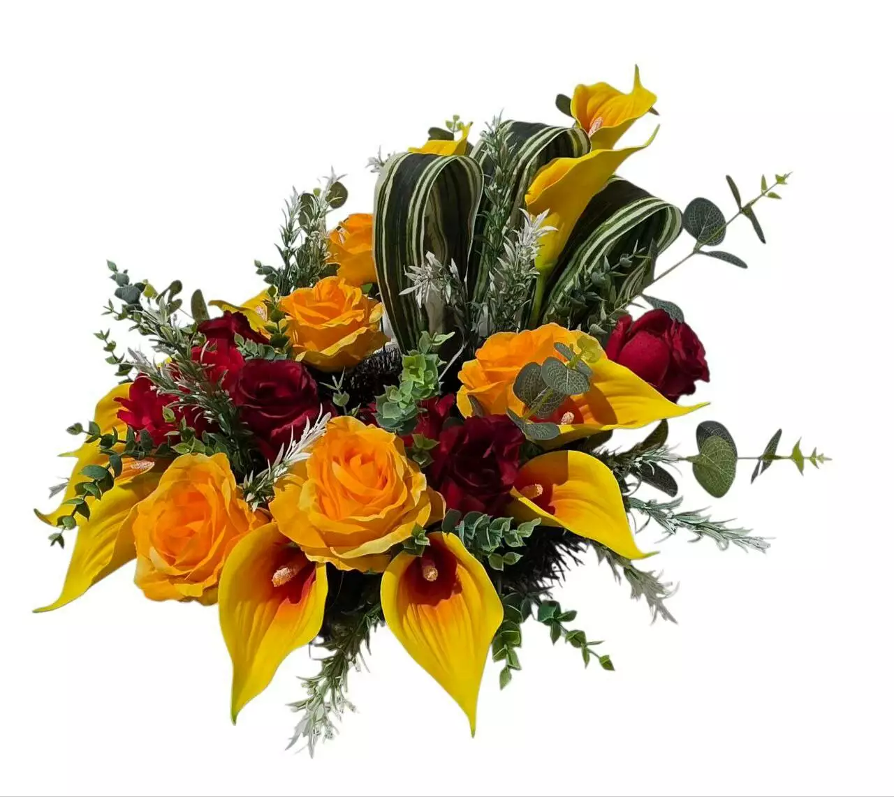 прикрашений головами троянди, півонії, кали, листям сансев'єрії,