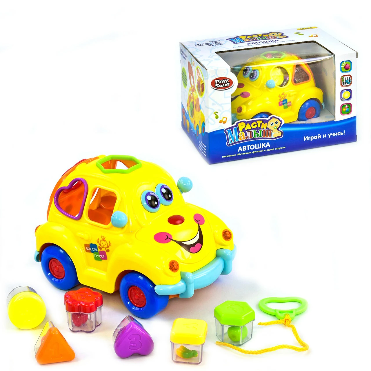 Машинка Kimi Автошка станет прекрасным другом для самого юного водителя. Машинка-сортер обладает оригинальным дизайном с милой мордочкой. Фигурки сортера выполнены в виде прозрачных баночек, в которых помещены разноцветные ягодки и фрукты. Отверстия для них распределены по всем граням игрушки, а через открывающуюся дверцу багажника их можно будет вытащить. Машинка самостоятельно передвигается, объезжает все препятствия. Кроме этого, в игрушке предусмотрены звуковые и световые эффекты: Автошка мигает фарами и воспроизводит весёлую песенку на русском языке. Машинка работает в двух режимах: