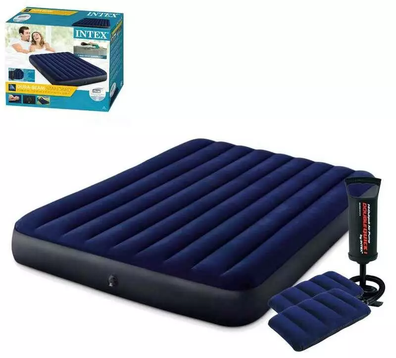 Intex Надувний матрац 64765 (3) "Квін" двомісний, 152х203х25см, 2 подушки, з ручним насосом, в коробці