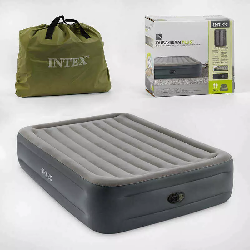 Intex Велюр матрац 64126 NP/ND (2) 152х203/206х46 см, вбудований електричний насос, двоспальний
