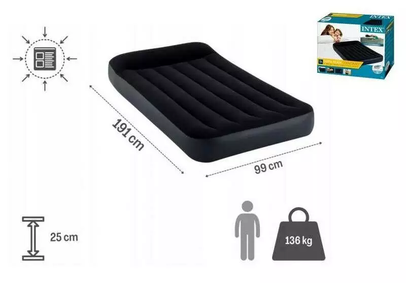 Intex Велюр матрац 64141 (4) розмір 191х99х25 см, односпальна, з підголівником