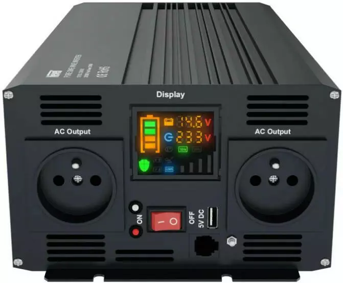 Инверторы чистой синусоидальной волны — это надежные и технологичные устройства, генерирующие напряжение, практически идентичное напряжению в домашней сети 230 В. Выбрав модель 24 В/230 В, 2000 Вт, вы можете быть уверены, что ваше электронное оборудование будет работать полностью эффективно и безопасно. Это особенно важно при использовании устройств, требующих точного питания. Используя чистую синусоидальную волну, вы избегаете риска повреждения, вызванного неподходящей формой волны напряжения, что может привести к поломкам и сокращению срока службы оборудования. Синусоидальные инверторы также очень эффективны и энергосберегающие. Их передовая электроника минимизирует потери энергии, обеспечивая эффективное преобразование энергии. В случае данной модели эффективность работы достигает 94% при 100% нагрузке.
