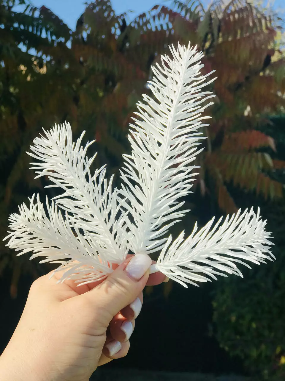 Искусственная хвоя, веточки ели для рукоделия (набор 600 шт.) белый