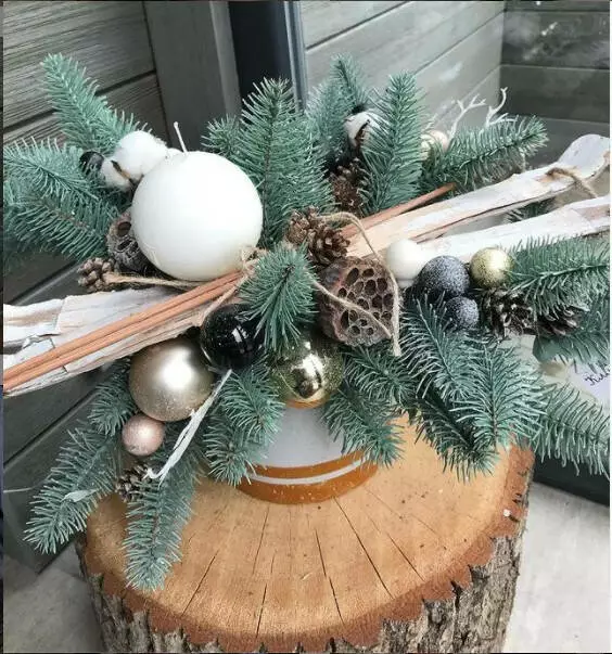 На фото варианты применения наших хвойных веточек от дизайнеров.
