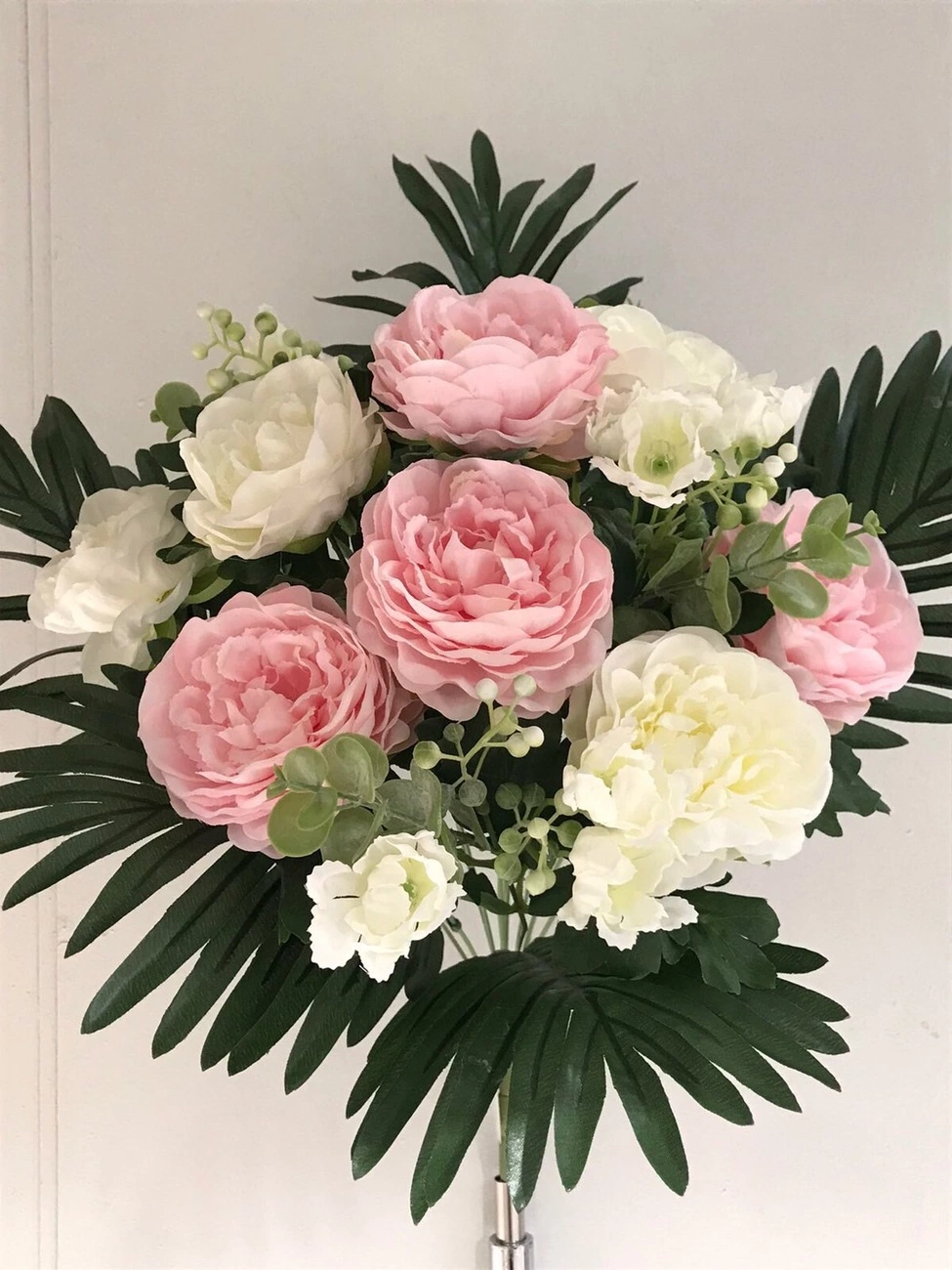 Искусственные цветы оптом. Пион с детками с папоротником Д 110