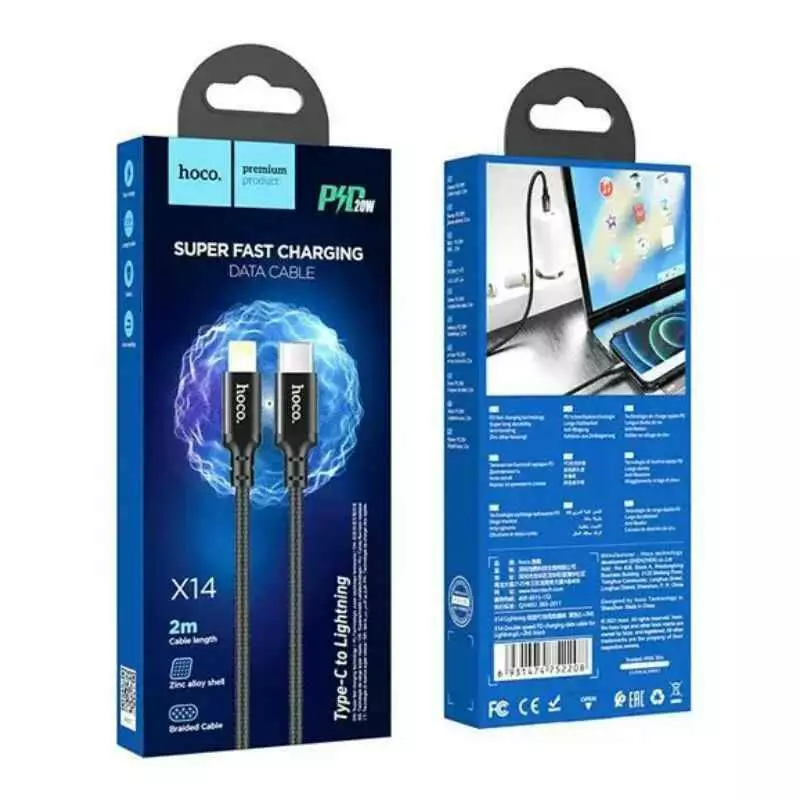 Кабель HOCO Type-C to Lightning Double Speed X14 |2m, 20W, PD| (black)