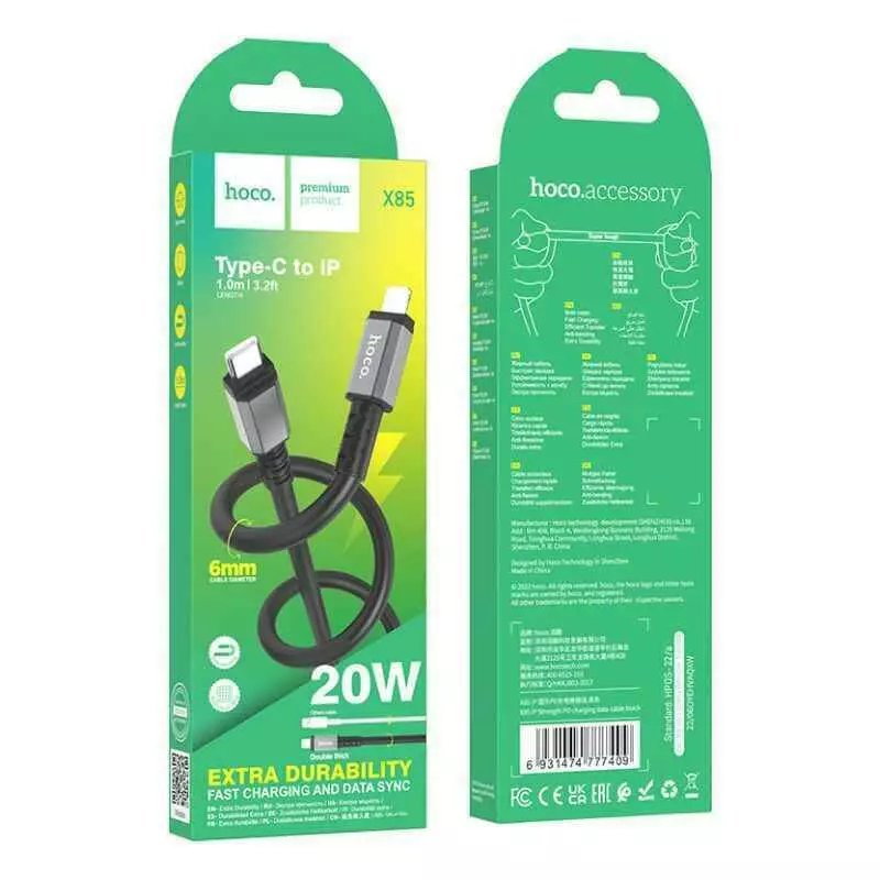Кабель HOCO Type-C to Lightning Strength PD charging data cable X85 |1m, 20W| (black)