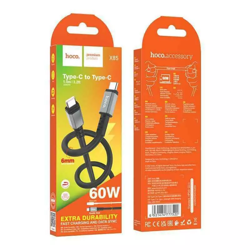 Кабель HOCO Type-C to Type-C Strength charging data cable X85 |1m, 60W, 3A| (black)