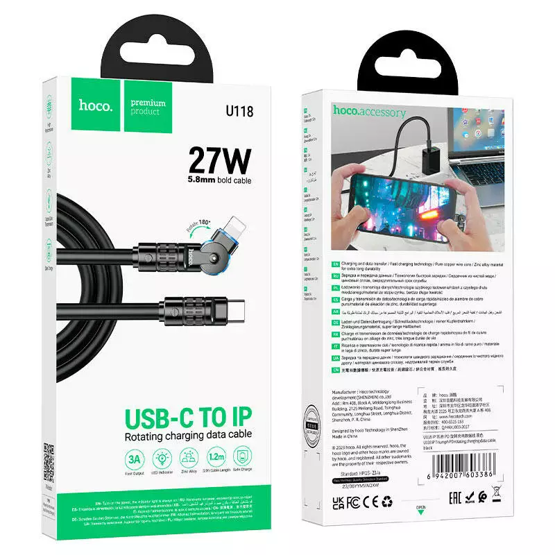 Кабель Hoco U118, Type-C-Lighting (поворот 180 °), 27W, довжина